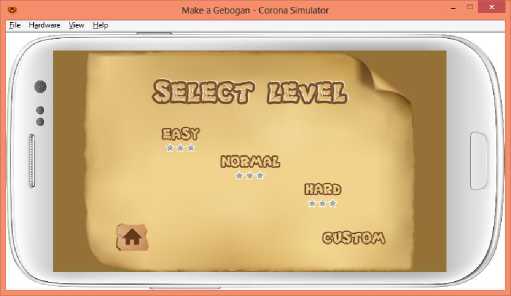 Gambar 6.Select Level Scene Aplikasi GameGebogan pada Emulator