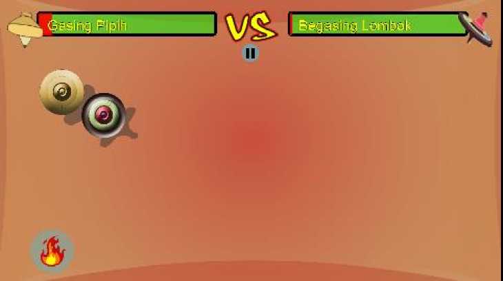 Game Play pada Gambar 8 berisi beberapa objek seperti background dengan tampilan lantai sebagai arena pertandingan, karakter dari gasing yang bertarung dengan health bar berwarna hijau yang merupakan kapasitas dari darah atau kekuatan gasing yang bertanding. Warna hijau menandakan darah atau kekuatan dari gasing, warna merah menandakan pengurangan pada darah atau kekuatan dari gasing karena adanya kerusakan atau serangan dari gasing lawan. Menggerakkan gasing yaitu dengan memanfaatkan fitur accelerometer dengan cara menggerakkan layar smartphone ke segala arah.