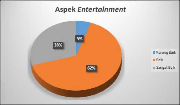 Tabel 2 merupakan penilaian responden terhadap aspek entertainment. Berdasarkan penilain responden tersebut didapatkan hasil sebagai berikut: