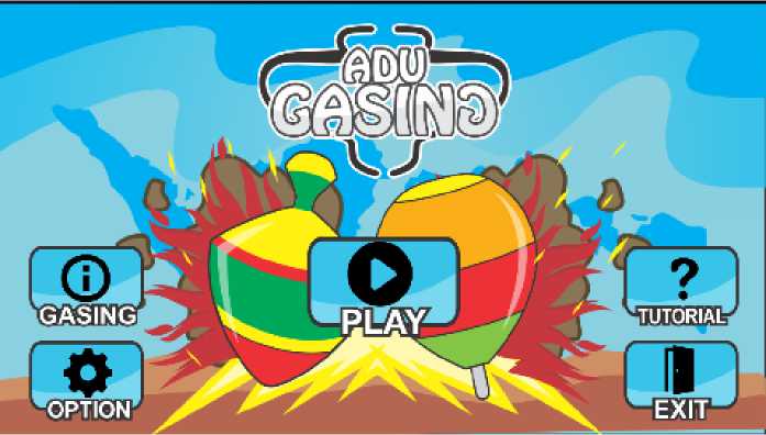 Sub bab ini akan membahas mengenai tampilan Game Adu Gasing pada scenescene utama.
