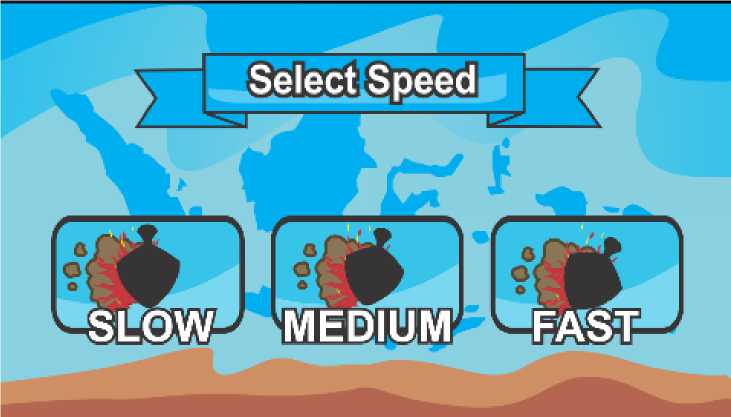 Select Speed pada Gambar 5 merupakan scene untuk menentukan pilihan kecepatan user dari Game Adu Gasing. Select Speed nantinya berepengaruh terhadap kecepatan dari gasing user saat beradu dengan gasing lawan. Slow merupakan pilihan kecepatan lambat untuk user yang ingin menggunakan gasing agar tidak terlalu cepat saat digerakkan, medium untuk ukuran kecepatan sedang dan fast untuk kecepatan gasing user dengan pergerakan cepat.