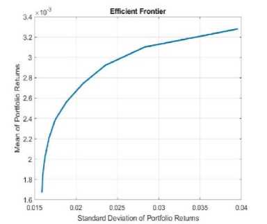 Setelah memperoleh expected return dan matriks varians-kovarians pada masing-masing klaster P1, P2, P3, dan P4. Dengan bantuan software MATHLAB ditentukan portofolio-portofolio efisien dari setiap klaster P1, P2, P3, dan P4 yang disajikan pada Gambar berikut.