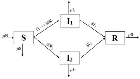 Berdasarkan pada diagram transfer pada Gambar 1. dapat bentuk model SI1I2R dalam sistem persamaan diferensial sebagai berikut: