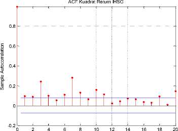 Menghitung nilai statistik uji ARCH LM menggunakan persamaan sebagai berikut (Rosadi [5]).