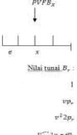peserta berusia x tahun adalah r(PVFNC)x sedangkan nilainya akan sama dengan nilai sekarang manfaat pensiun saat tertanggung berusia x tahun yaitu r(PVFB)x (Nurcahyani & Endang [4]), sehingga diperoleh persamaan: