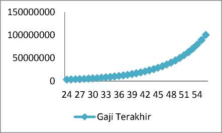Gambar 3. Grafik Nilai Sekarang dari Manfaat Pensiun (Present Value of Future Benefit) dengan Asumsi Skala Gaji Terakhir.