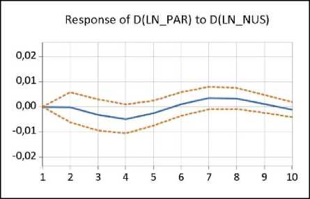 Dengan melakukan plot IRF secara visual dapat diamati perilaku satu variabel dalam menerima berbagai guncangan (shock) dari variabel lain dalam sistem.