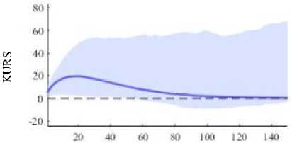 Pada Gambar 9. terlihat bahwa setelah bulan pertama sampai bulan ke-30 terdapat reaksi positif pada kurs CNY terhadap IDR karena adanya shock dari jumlah kunjungan wisatawan Cina ke Bali. Setelah bulan ke-30 kurs CNY terhadap IDR cenderung stabil.