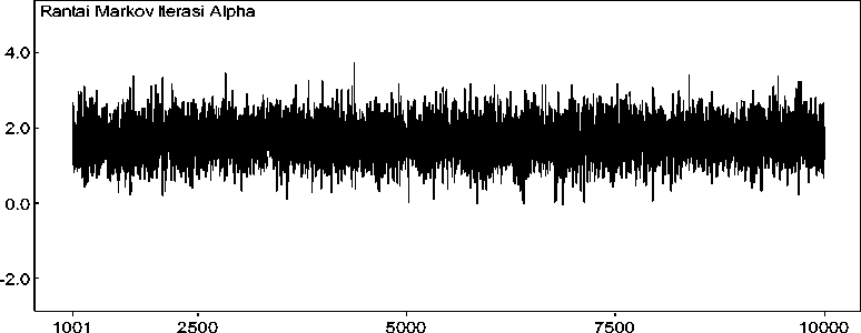 Gambar 2a. menunjukkan rantai Markov yang diperoleh dari iterasi Gibbs Sampler untuk parameter α0. Dari rantai Markov yang diperoleh, dapat dibentuk suatu plot fungsi