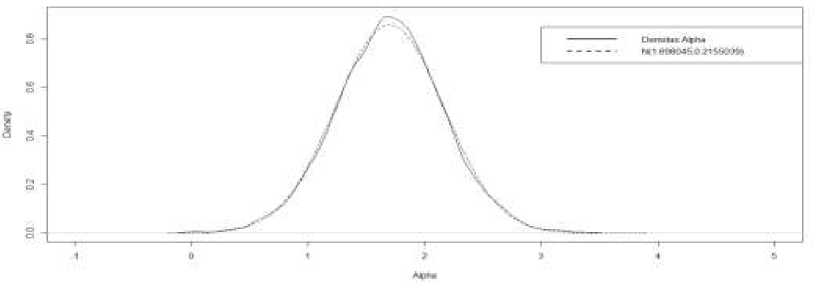 Gambar 2b. Plot Fungsi Densitas untuk α0