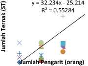Banyaknya tenaga pengarit meningkat seiring banyaknya jumlah ternak.Pengaruh ini dimodelkan dalam bentuk persamaan linear. Berdasarkan model