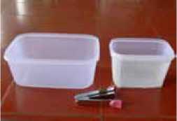 Alat yang digunakan meliputi pot plastik ukuran 19×12×9cm (pot A) dan pot plastik ukuran 12×8×9cm(pot B) [Lampiran 6]; dan pembatas nilon ukuran diameter pori-pori 30 µm (Nytal Nylon Monofilament, Switzerland) [Lampiran 7].