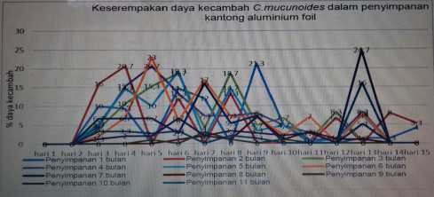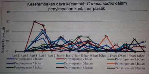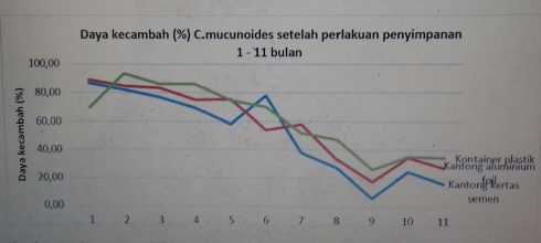 Dari hasil percobaan ternyata bahwa benih C.mucunoides yang disimpan di dalam kontainer plastik memperlihatkan viabilitas dan vigor terbaik pada umur penyimpanan dari 1 bulan – 6 bulan. Kemudian diikuti perlakuan penyimpanan kantong aluminum foil dan terendah kantong kertas semen.