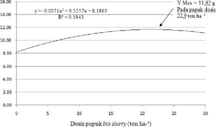 Gambar 2. Titik maksimal hasil berat kering (BK) total hijauan kembang telang (C. Ternatea) yang diberi pupuk bio slurry dengan dosis berbeda.