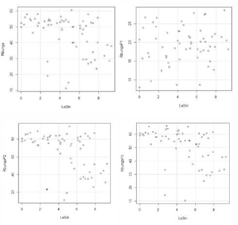 Gambar 3. Diagram Pencar Pertumbuhan Rangkum Bunga Indi-gofera Selama Pengamatan pada Jumlah Rangkum Bunga Keseluruhan, Rangkum Bunga yang Ditanam pada Jarak 1 X 1.5 M, 1.5 X1.5 M Dan 2 X 1.5 M