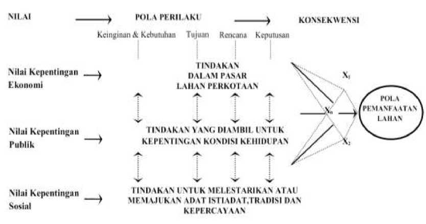 Gambar 1. Hubungan antara faktor-faktor penentu dalam pemanfaatan lahan Sumber: Chapin (1957:72) dalam Suartika (2010:41)
