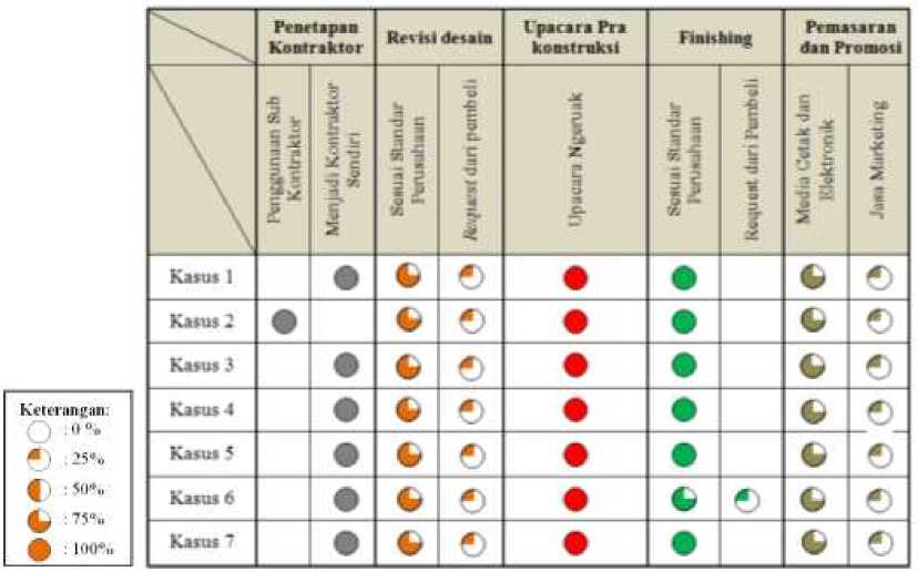 Isu-isu yang terungkap di lapangan di setiap studi kasus pada penelitian melalui observasi lapangan serta pada saat wawancara dengan informan maupun responden adalah, pemilihan site, perancangan bangunan, tahap konstruksi, pasca konstruksi, dan purna jual.