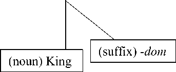 The suffix {-dom} means domain or condition.Based on the data above, the meaning of the nominalizing affixes of the derived noun kingdom is domain that isruled by a king or queen. The derivational process and the constituent structure of those derived nouns are shown in the table and in the diagram below: