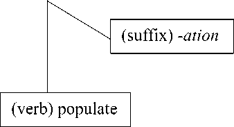 derived noun investigation means action of investigating something or someone, generation and population means state of beinggenerateand populate. The derivational process and the constituent structure of those derived nouns are shown in the table and in the tree diagram below: