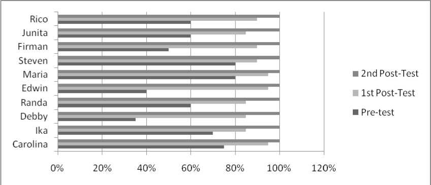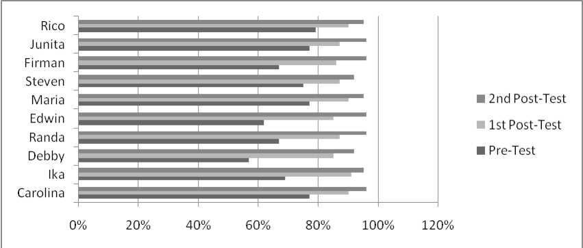 correctly, and it extremely raised to 85%-90% in the 1st post-test. And in the 2nd posttest, all of the students answered all the questions correctly.