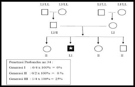 Gambar 2. (A) Silsilah keluarga probandus no 12, (B) Silsilah keluarga probandus no 27.