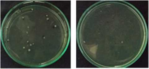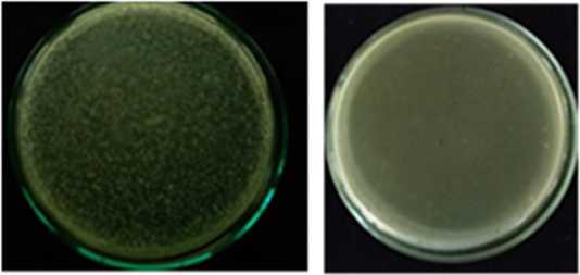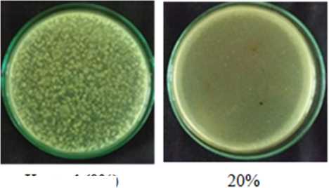 4,66x102CFU/g(Tabel 1). Pertumbuhan bakteri E.coli di media NA pada perlakuan kontrol (0%) dan konsentrasi 20% dapat dilihat pada Gambar 3.