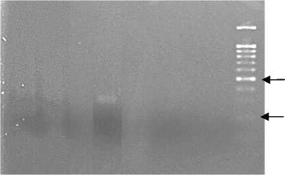 (1985) dengan modifikasi menunjukkan adanya pita DNA (tanda panah pada Gambar 1)