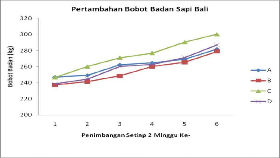 Gambar 3.1 Bobot Badan Sapi Bali Setiap 2 Minggu Penimbangan