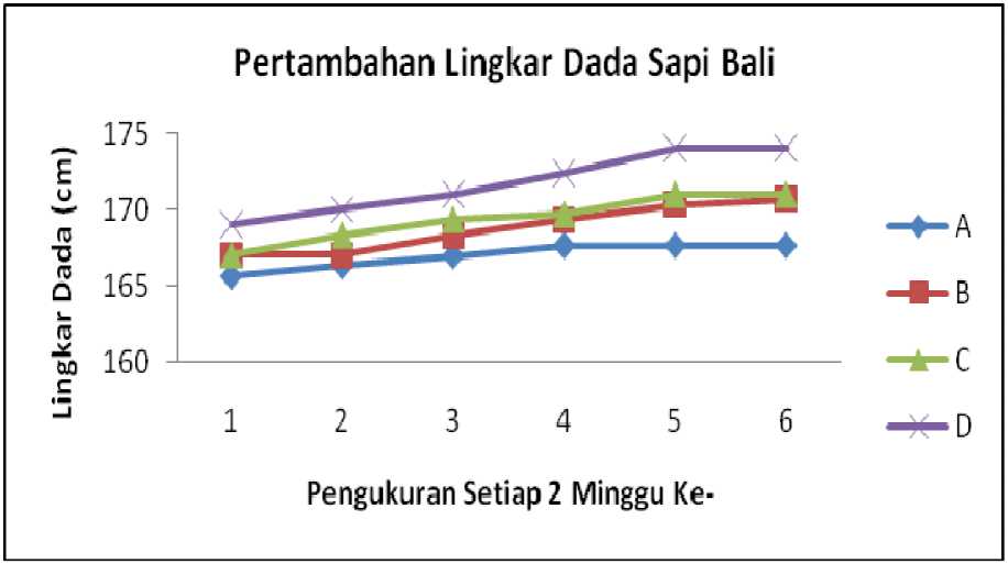 Gambar 3.3 Pertambahan Lingkar Dada Sapi Bali Setiap 2 Minggu Pengukuran