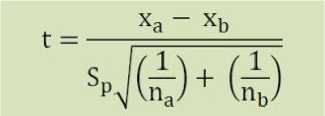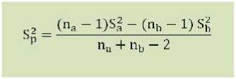 gabungan, Sa = Standar deviasi kelompok a, Sb = Standar deviasi kelompok b, na = banyaknya sampel di kelompok a, nb = banyaknya sampel di kelompok b, DF = na + nb -2