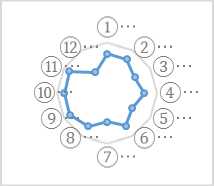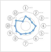 The measurement results are shown in the form of a circular graph with 12 angles with each angle having a scale of 0 (lowest) to 5 (highest) values as follows: