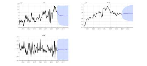 We used Bayesian vector autoregression up to lag four which is empirically sufficient according to [10] and in fact, stability condition is satisfied. The forecasts can be seen in Fig 1.