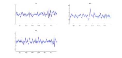 Fig. 3. Structural shocks for the three variables: AU, AUD, and INFL.