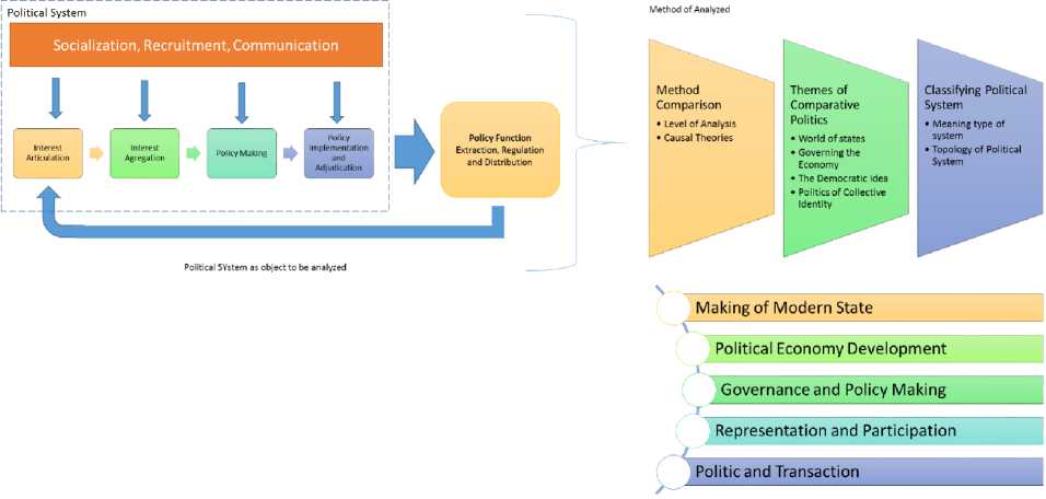In politics, comparative studies of politics have two roles at once namely, the first, comparative studies of politics as a theory, and the second name, the role of comparative studies of politics as a method. The study of political comparison as a theory is more directed to a collection of generalizations that are systematically linked, while the study of political comparison seen as a method is more directed to the process or procedure that involves the use of techniques and instruments. Method of comparing political system using one by one its structure descriptions are lame because people tend to unable create relation between organizational current issues and the positioning administration of political system appropriately. This paper is there for making us aware once more time about how doing the best comparison between one country and another. This study aims to create bridge to bring connection between political system’s work, issues that exist in the organization analyze structural cases using the method of political comparison cannot just compare different structures.